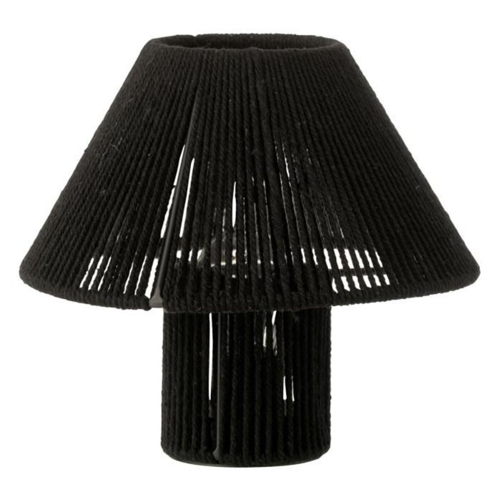 Informations Techniques : Dimensions : L. 21,2 x l. 21,2 x H. 18,7 cm Matières : 54 % Métal, 34% Coton & 12% Plastique Spécificités : Tendance & Utile Lampe à LED Abat-jour en coton Poids : 0,26 kg Couleur : Noir