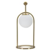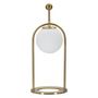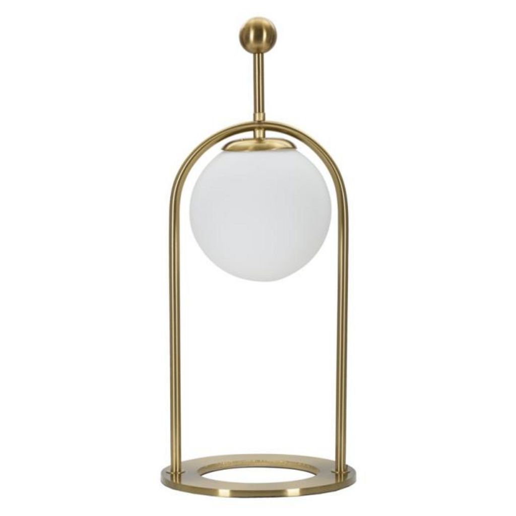 Informations Techniques : Dimensions : L. 21 x l. 21 x H. 50 cm Matières : Métal & Verre Spécificités : Chic & Utile Lampe de table design Abat-jour sphère en verre Ampoule non incluse Douille : E14 Puissance : 40 W Voltage : 220 V Fréquence : 50 Hz Poids : 3 kg Couleur : Blanc & Or