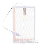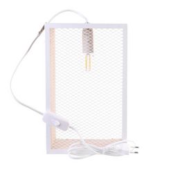 Informations Techniques : Dimensions : L. 18 x l. 11 x H. 29 cm Matières : Métal & Bois Spécificités : Design & Cocoon Crochets intégrés au dos Grillage en Métal Type d'Ampoule : E14 Ampoule non incluse Fonctionne sur secteur Entrée 220-240V Couleur : Blanc & Naturel