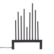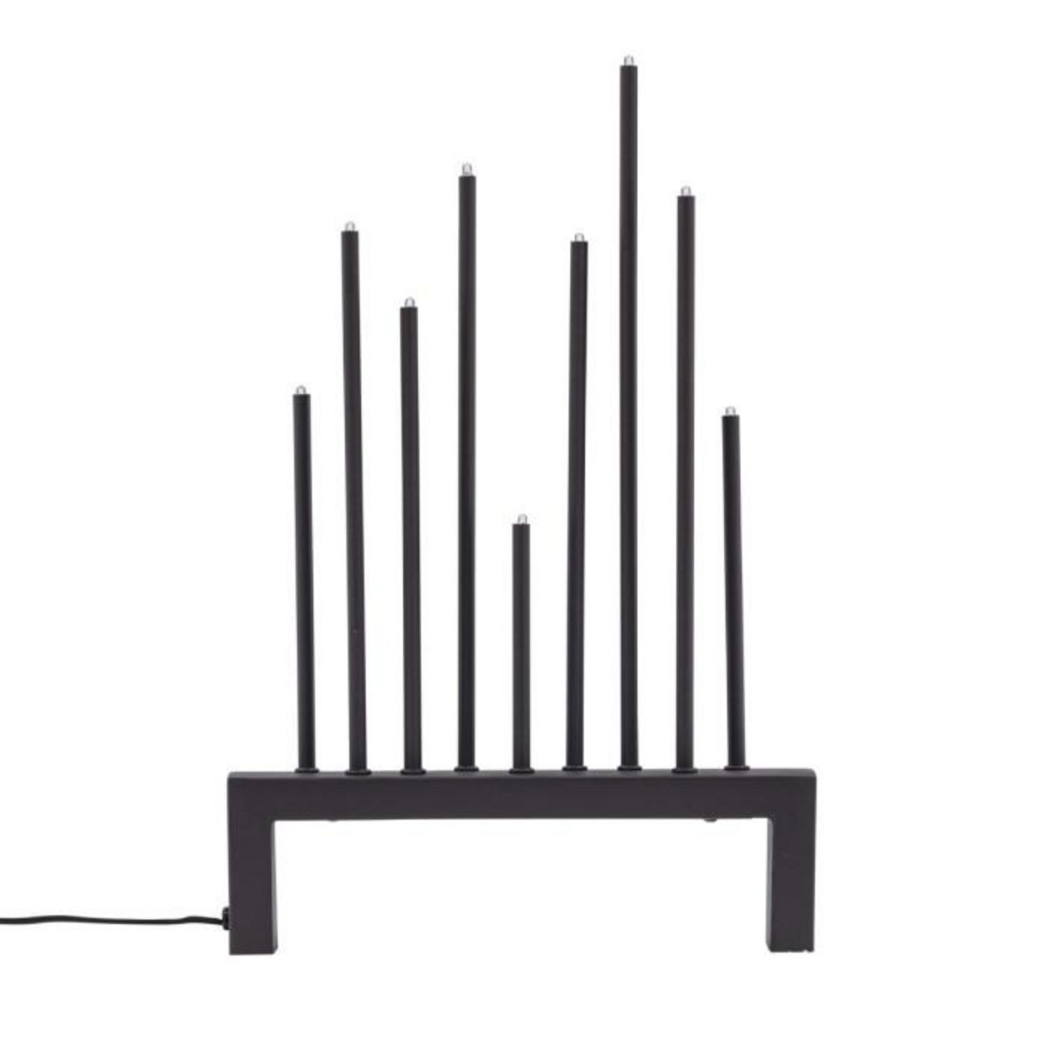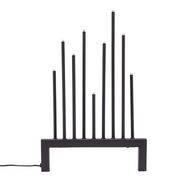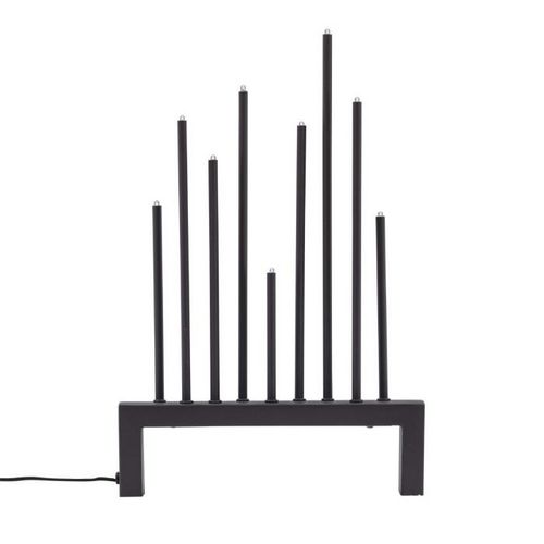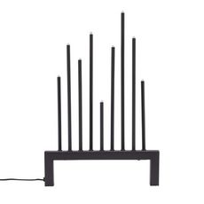 Informations Techniques : Dimensions : L. 27 x l. 6 x H. 42 cm Matières : Acier & Plastique Spécificités : Pratique & Tendance Lampe à poser déco Type bougeoir Avec 9 têtes Douille : E5 (incluses) Puissance : 9 x 0,5 W Poids : 1,4 kg Couleur : Marron
