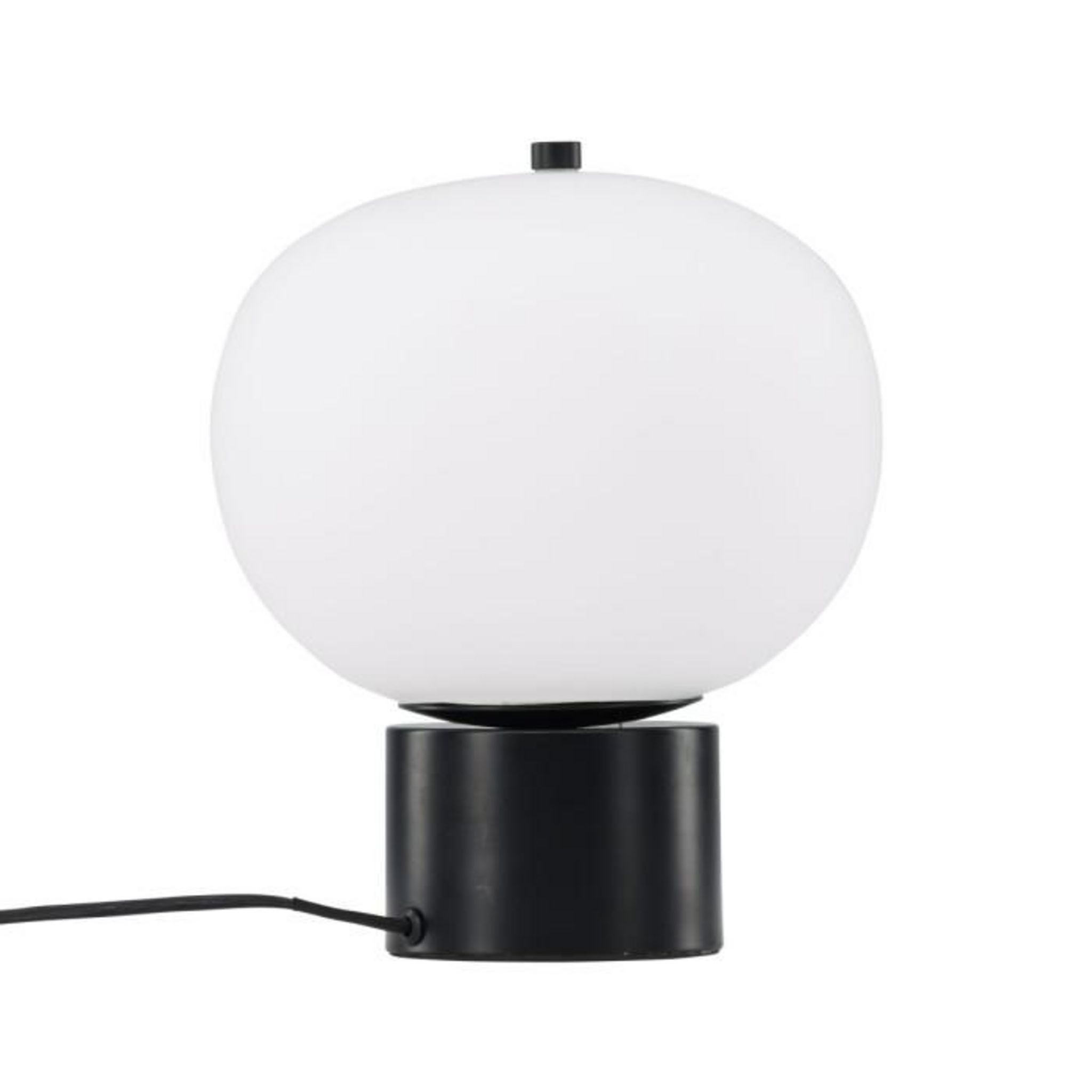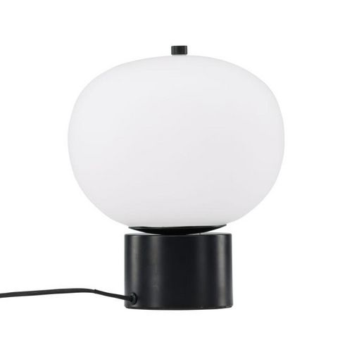 Informations Techniques : Dimensions : L. 25 x l. 25 x H. 30 cm Matières : Métal & Verre Spécificités : Pratique & Tendance Lampe à poser Forme ronde Ampoule non incluse Douille : E27 Puissance : 11W Poids : 1,8 kg Couleur : Blanc & Noir