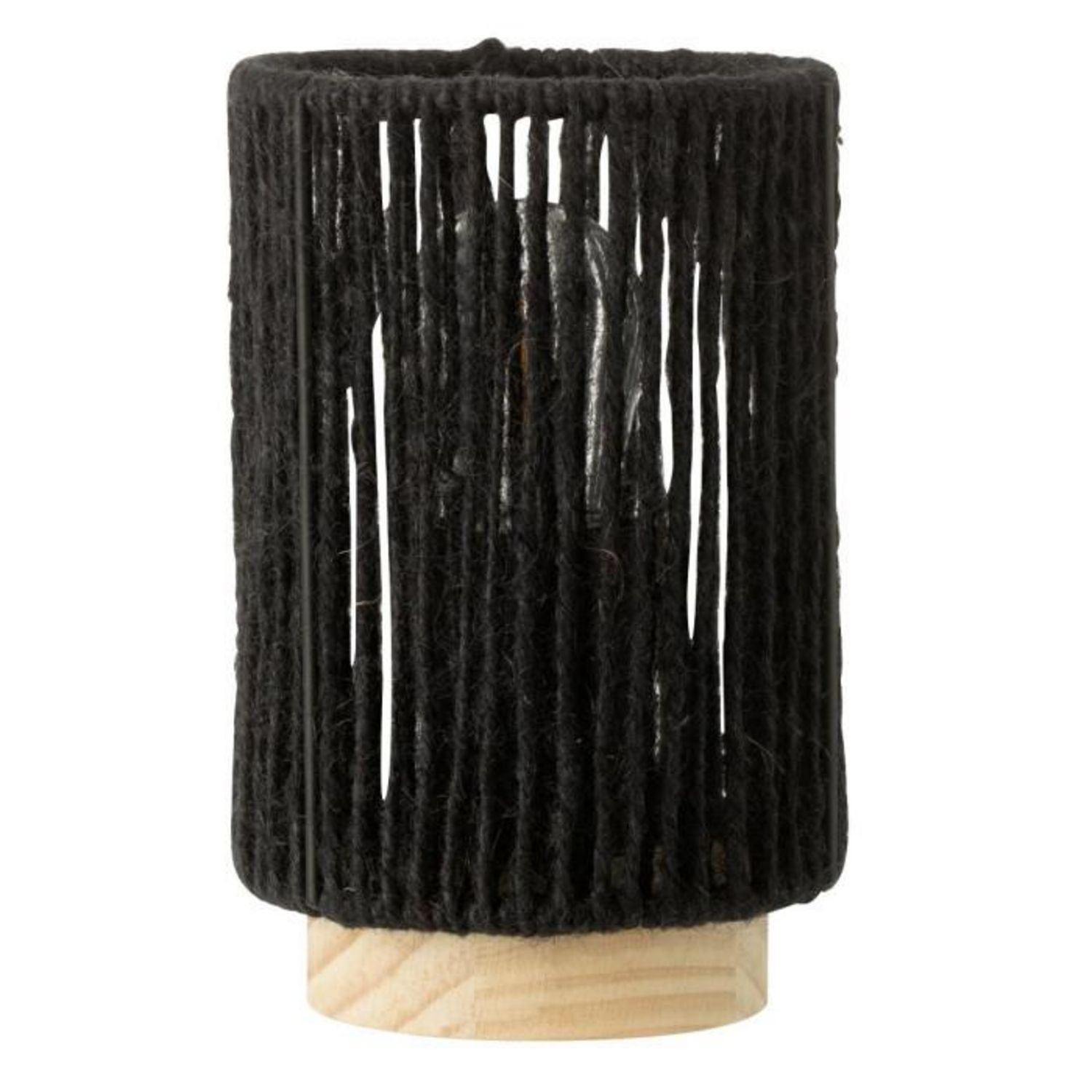 Informations Techniques : Dimensions : L. 10,5 x l. 10,5 x H. 16 cm Matières : 15% Bois, 32% Métal, 28% Coton & 25% Plastique Spécificités : Tendance & Utile Lampe cylindrique à LED Abat-jour en coton Poids : 0,17 kg Couleur : Noir