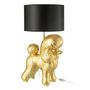 Informations Techniques : Dimensions : L. 42 x l. 37 x H. 74,5 cm Matières : 55% Chaux (Poudre) & 45% Résine Spécificités : Originale & Utile Lampe de table déco Design caniche Interrupteur on/off Ampoule non incluse Douille : E27 Puissance : 25W Poids : 3,9 kg Couleur : Or