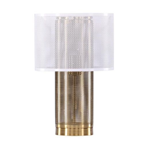 Informations Techniques : Dimensions : L. 25 x l. 25 x H. 39 cm Matière : Métal Spécificités : Pratique & Tendance Lampe à poser déco Abat jour et pied ajourés Motif en maille Forme ronde Ampoule non incluse Douille : E27 Puissance : 25W Poids : 2 kg Couleur : Blanc & Or