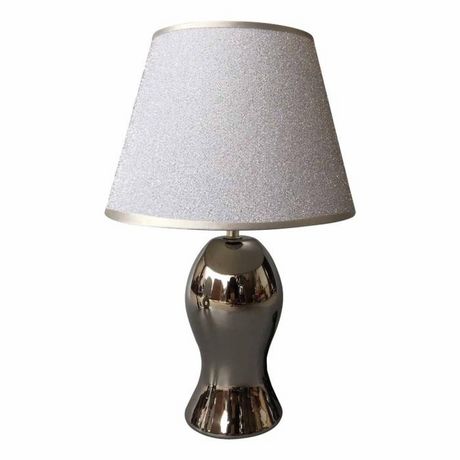 Informations Techniques : Dimensions : L. 25 x l. 25 x H. 37 cm Matière : Céramique Spécificités : Tendance & Chic Lampe à poser Déco Type de culot : E14 Abat-jour Paillette Couleur : Argent