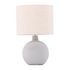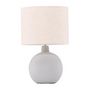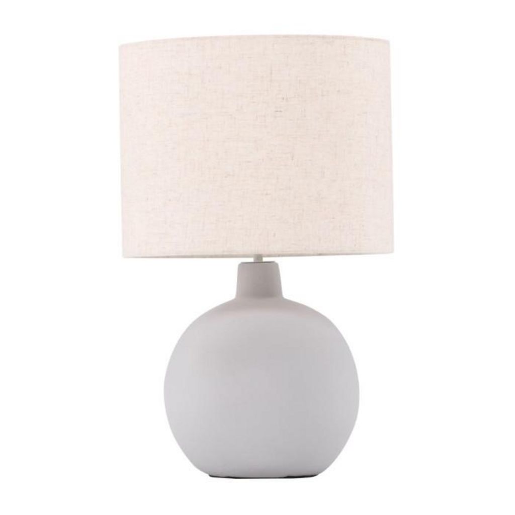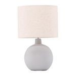 Informations Techniques : Dimensions : L. 32 x l. 32 x H. 51 cm Matières : Béton, Tissu & PVC Spécificités : Pratique & Tendance Lampe à poser Pied arrondi en béton Forme ronde Ampoule non incluse Douille : E27 Puissance : 25 W Poids : 3,7 kg Couleur : Gris