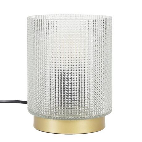 Informations Techniques : Dimensions : D. 11,5 x H. 15 cm Matières : Verre, Métal, Cuivre & PVC Spécificités : Chic & Déco Verre embossé Interrupteur on/off Forme ronde Ampoule non incluse Douille : E14 Puissance : 25W Alimentation : Prise secteur 220/240V Poids : 0,6 kg Couleur : Blanc