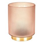 Informations Techniques : Dimensions : D. 11,5 x H. 15 cm Matières : Verre, Métal, Cuivre & PVC Spécificités : Chic & Déco Verre embossé Interrupteur on/off Forme ronde Ampoule non incluse Douille : E14 Puissance : 25W Alimentation : Prise secteur 220/240V Poids : 0,6 kg Couleur : Rose