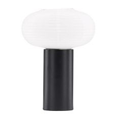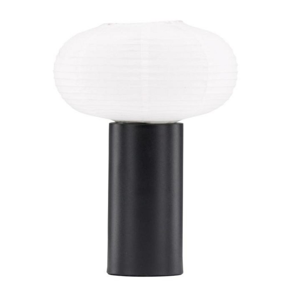 Informations Techniques : Dimensions : D. 25 x H. 32,5 cm Matières : Acier, Papier & PVC Spécificités : Pratique & Tendance Lampe à poser design Pied cylindrique en acier Abat jour ovale en papier de riz blanc Ampoule non incluse Douille : E27 Poids : 0,7 kg Couleur : Noir