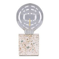 Informations Techniques : Dimensions : L. 9 x l. 9 x H. 9 cm Matières : Pierre & PVC Spécificités : Pratique & Tendance Lampe à poser design Cube en terrazzo Ampoule non incluse Douille : E27 Puissance : 25 W Poids : 1,5 kg Couleur : Gris