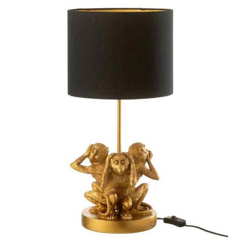 Informations Techniques : Dimensions : L. 25,5 x l. 25,5 x H. 53 cm Câble : L. 200 cm Matière : Résine Spécificités : Tendance & Moderne Lampe à Poser Design 3 Singes Douille E27 Puissance Maximale : 60W A monter soi-même Poids : 1,96 kg Couleur : Or & Noir