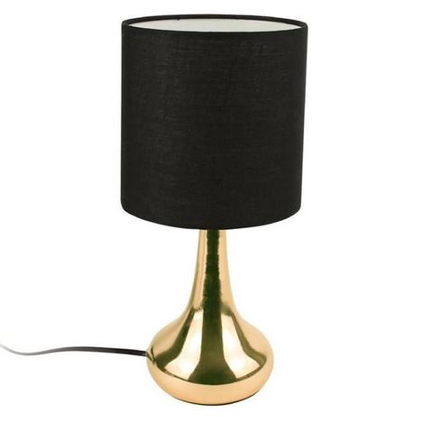Informations Techniques : Dimensions : L. 15 x l. 15 x H. 32,5 cm Matière : Métal Spécificités : Pratique & Utile Lampe à Poser Design Lampe Tactile Ampoue E17 non incluse Puissance : 10W Branchement sur secteur Couleur : Noir & Or