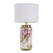 Informations Techniques : Dimensions : L. 25 x l. 25 x H. 48 cm Matières : Céramique, Métal, PVC & Polyester Spécificités : Élégante & Utile Lampe de table design Base imprimé floral Abat-jour en tissu Ampoule non incluse Douille : E27 Puissance : 40 W Voltage : 220 V Fréquence : 50 Hz Poids : 1 kg
