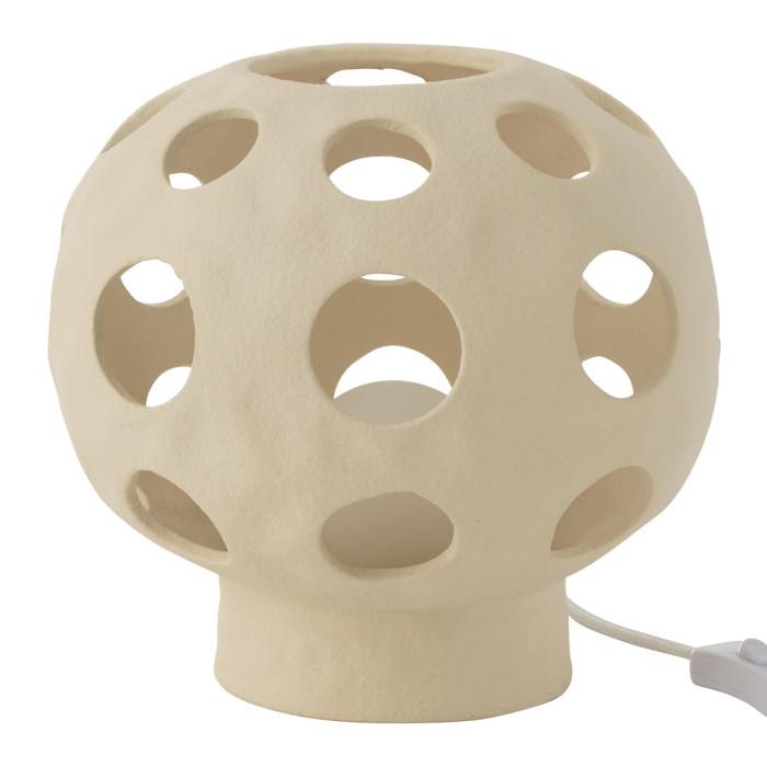 Informations Techniques : Dimensions : L. 25 x l. 25 x H. 21,5 cm Câble : L. 180 cm Matière : 100% Grès Spécificités : Utile & Moderne Lampe de table globe Design ajouré Interrupteur on/off Ampoule non incluse À monter soi-même Douille : G9 Puissance : 5W Poids : 2 kg Couleur : Beige