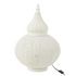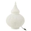 Informations Techniques : Dimensions : D. 40 x H. 59,5 cm Câble : L. 210 cm Matière : Métal Spécificités : Pratique & Utile Lampe à poser déco Style oriental Design ajouré Interrupteur on/off Ampoule non incluse Vendue à l'unité Puissance : 40W Poids : 1,55 kg Couleur : Blanc