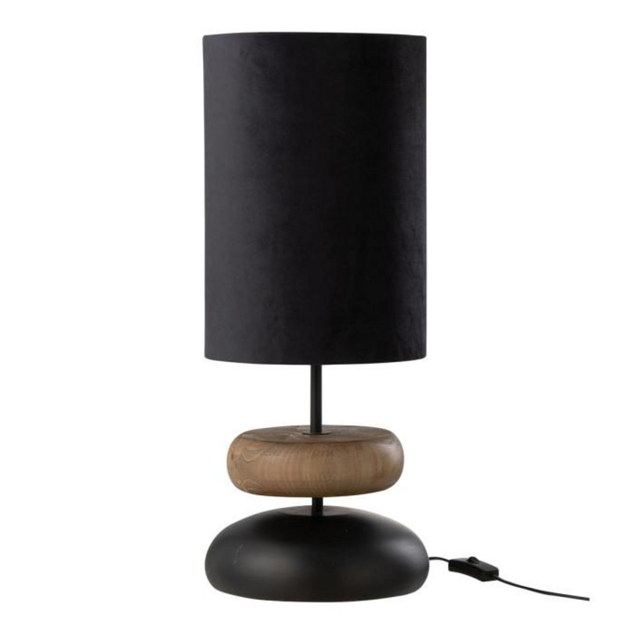 Informations Techniques : Dimensions : L. 25 x l. 25 x H. 61 cm Matières : Métal, Velours & Bois (Sapin) Spécificités : Utile & Moderne Lampe de table design Élément rond en bois Abat-jour tissu velours Interrupteur on/off Ampoule non incluse À monter soi-même Poids : 1,82 kg Couleur : Noir