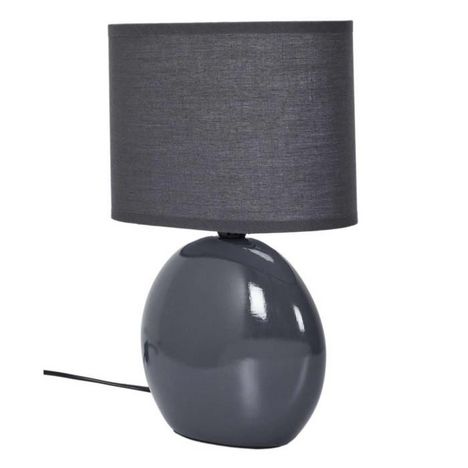 Informations Techniques : Dimensions : L. 19,5 x l. 11 x H. 30 cm Câble : L. 150 cm Matières : Porcelaine & Coton Spécificités : Moderne & Utile Lampe de table ovale Alimentation secteur 220/240 Douille : E14 Poids : 0,49 kg Couleur : Gris Anthracite