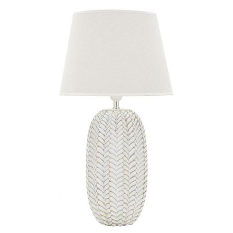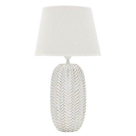 Informations Techniques : Dimensions : L. 35 x l. 35 x H. 65 cm Matières : Polyrésine, Métal & Tissu Spécificités : Chic & Utile Lampe de table design Base motifs feuilles en relief Abat-jour en tissu Ampoule non incluse Douille : E27 Puissance : 40 W Voltage : 220 V Fréquence : 50 Hz Poids : 2,5 kg