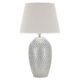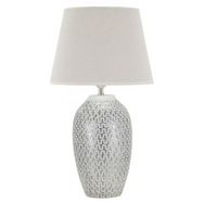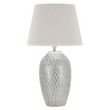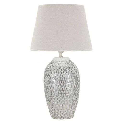 Informations Techniques : Dimensions : L. 35 x l. 35 x H. 65 cm Matières : Polyrésine, Métal & Tissu Spécificités : Chic & Utile Lampe de table design Base motifs géométriques Abat-jour en tissu Ampoule non incluse Douille : E27 Puissance : 40 W Voltage : 220 V Fréquence : 50 Hz Poids : 2,6 kg Coule