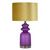 Informations Techniques : Dimensions : L. 32,5 x l. 32,5 x H. 57,5 cm Matières : Verre, Métal & Tissu Spécificités : Colorée & Utile Lampe de table design Abat-jour en tissu Ampoule non incluse Douille : E27 Puissance : 40 W Voltage : 220 V Fréquence : 50 Hz Poids : 1,9 kg Couleur : Violet & Or