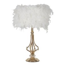 Lampe à Poser Imitation Plume Tarty 54cm Or & Blanc