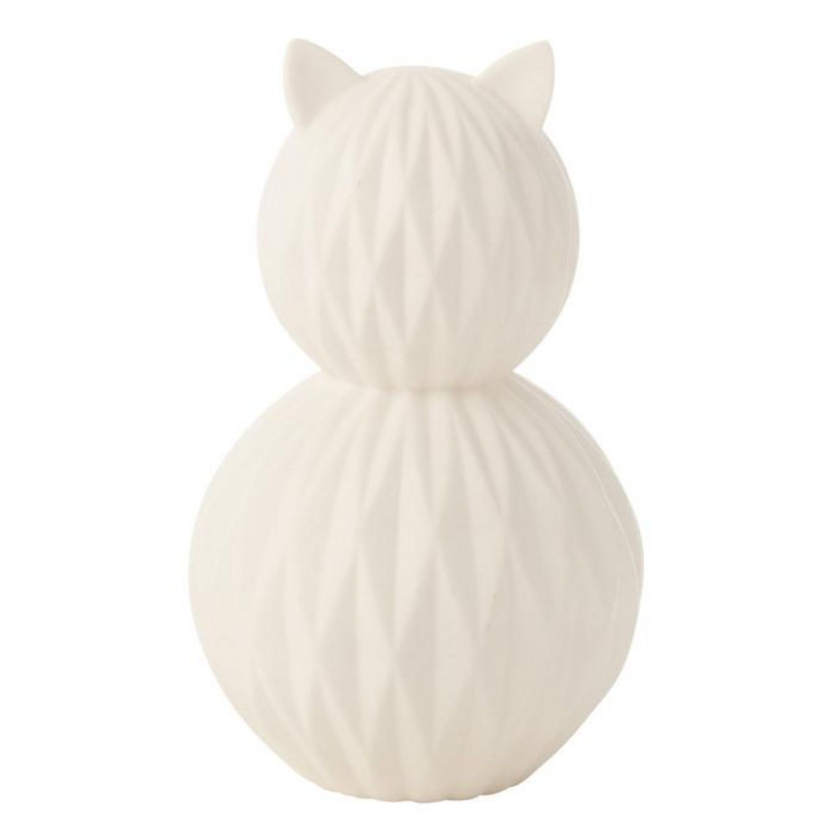 Lampe à Poser LED en Porcelaine Chat 22cm Blanc