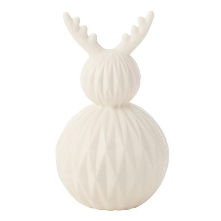 Informations Techniques : Dimensions : L. 13,5 x l. 13,5 x H. 23,5 cm Matière : Porcelaine Spécificités : Déco & Utile Lampe de table à LED Design renne Vendue à l'unité Poids : 0,55 kg Couleur : Blanc