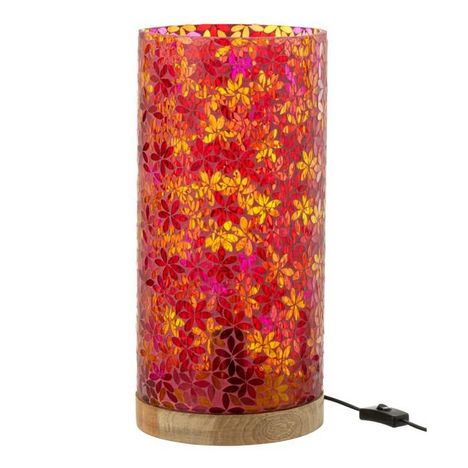 Informations Techniques : Dimensions : L. 21 x l. 21 x H. 45,5 cm Câble : L. 200 cm Matières : Verre & Bois Spécificités : Colorée & Utile Lampe cylindrique Motifs fleurs en mosaïque Interrupteur on/off Ampoule non incluse Vendue à l'unité Douille : E27 Puissance : 60 W Poids : 2,2 kg Couleur : Mult