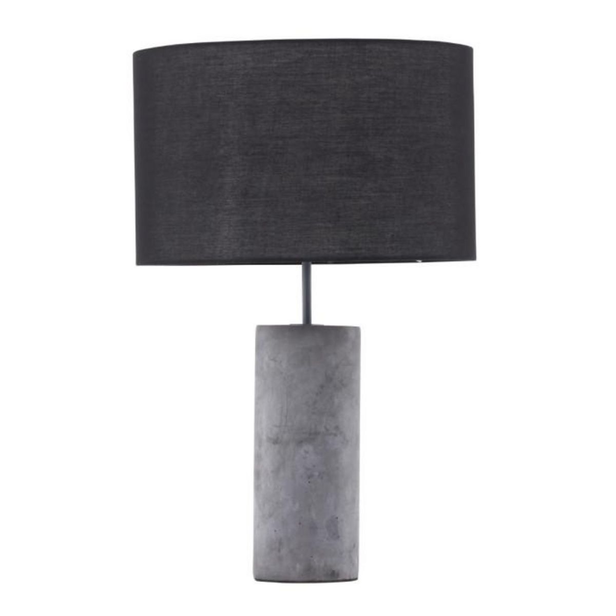 Informations Techniques : Dimensions : L. 40 x l. 40 x H. 63 cm Matières : Béton, Tissu & PVC Spécificités : Pratique & Tendance Lampe à poser déco Forme ronde Ampoule non incluse Douille : E27 Puissance : 25 W Poids : 3,1 kg Couleur : Noir & Gris