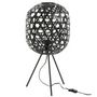 Informations Techniques : Dimensions : L. 29 x l. 29 x H. 59,5 cm Matières : (65%) Bambou, (30%) Métal & (5%) Plastique Spécificités : Monté sur trépied Puissance maximale : 60W Type de culot : E27 Poids : 1,46 kg Couleur : Noir