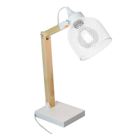 Informations Techniques : Dimensions : L. 26 x l. 14 x H. 38 cm Matières : Bois & Métal Spécificités : Design & Astucieux Tête Orientable Type d'Ampoule : E27 Puissance Max : 10 W Ampoule non incluse Fonctionne sur secteur Entrée 220-240V Couleur : Blanc & Naturel
