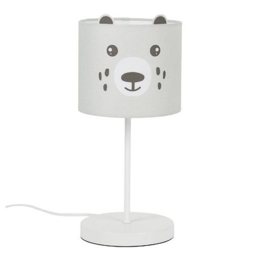 Informations Techniques : Dimensions : D. 16 x H. 36 cm Matières : Métal, Polyester & PVC Spécificités : Pratique & Déco Lampe de chevet enfant Design ours Avec interruption on/off Ampoule non incluse Forme ronde Poids : 0,58 kg Couleur : Gris