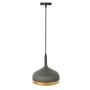 Informations Techniques : Dimensions : D. 30 cm Longueur du câble : 100 cm Matière : Métal Spécificités : Élégante & Moderne Lampe Suspension Design Forme de Cloche Type de culot : E27 Puissance : 40W Ampoules Non Incluses Couleur : Gris & Or