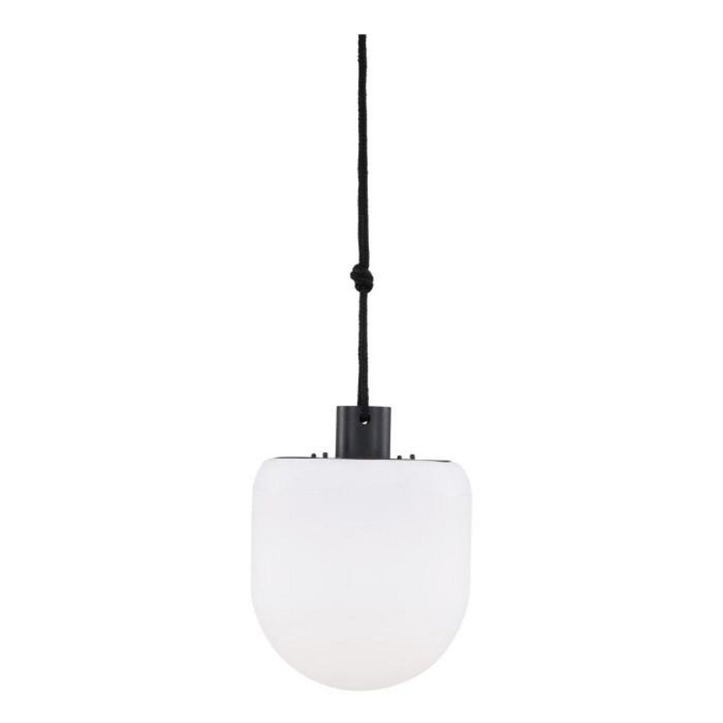 Informations Techniques : Dimensions : D. 16 x H. 21 cm Câble : L. 100 cm Matières : Plastique, Acier & PVC Spécificités : Pratique & Moderne Suspension à LED Intensité variable Alimentation : Batterie Poids : 0,35 kg Couleur : Noir & Blanc