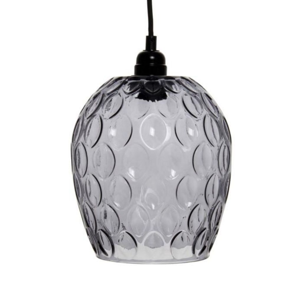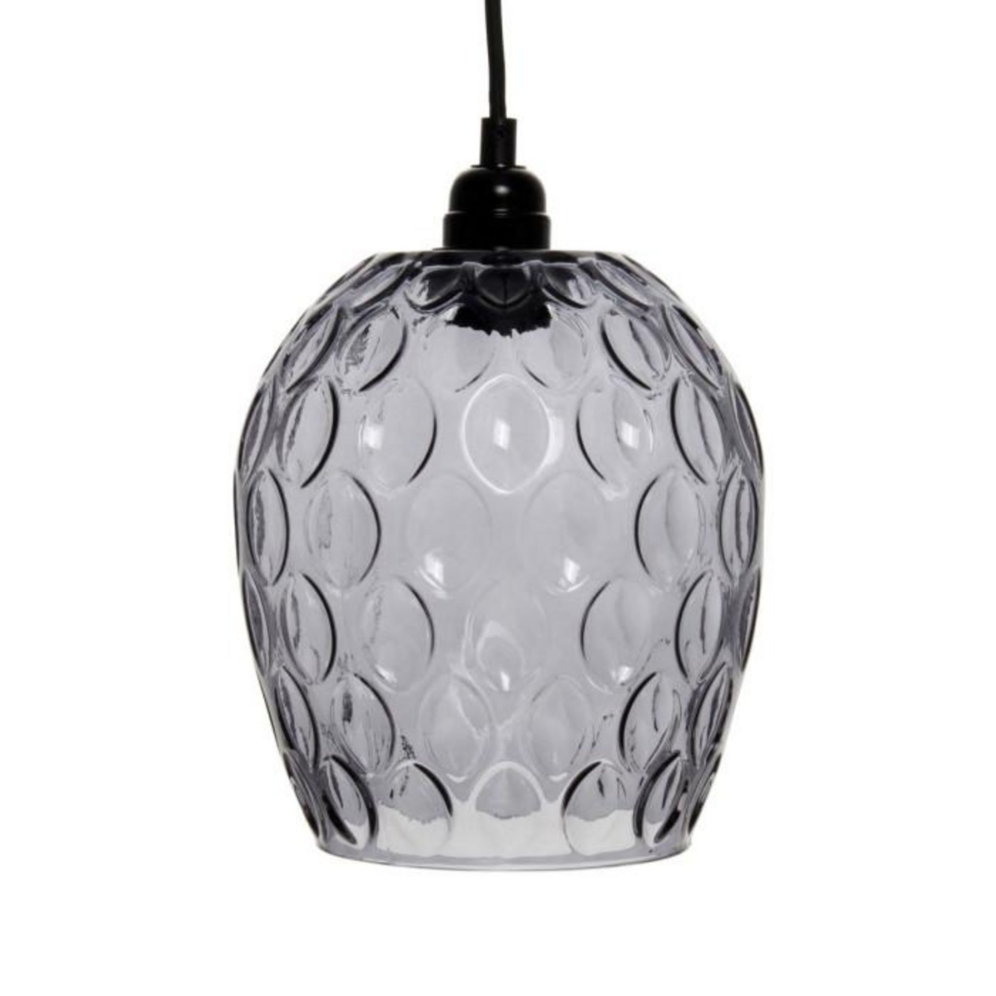 Informations Techniques : Dimensions : L. 18 x l. 18 x H. 27 cm Longueur du câble : L. 100 cm Matière : Verre Spécificités : Moderne & Tendance Lampe Suspension Déco Type de Culot : E27 Puissance : 1 x 40W Ampoule Non Incluse Fait à la Main Poids : 1350 g Couleur : Gris