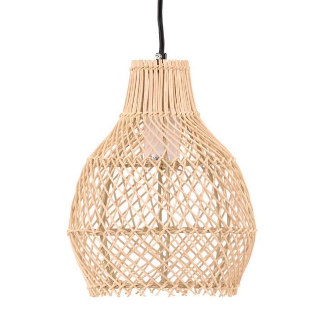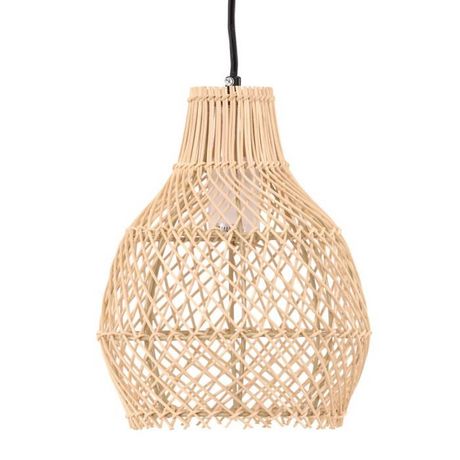 Informations Techniques : Dimensions : L. 20 x l. 20 x H. 25 cm Matières : Rotin, Métal & PVC Spécificités : Pratique & Tendance Lampe suspension déco Abat-jour arrondi Avec sommet rétréci Tressage large Ampoule non incluse Douille : E27 Puissance : 25 W Poids : 0,6 kg Couleur : Naturel
