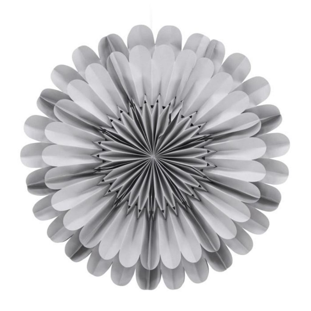 Informations Techniques : Dimensions : D. 60 cm Matières : Papier & PVC Spécificités : Pratique & Tendance Lampe suspension déco Design fleur Forme ronde Douille : E14 (Ampoule non incluses) Poids : 0,8 kg Couleur : Gris Foncé