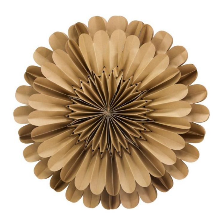 Informations Techniques : Dimensions : D. 60 cm Matières : Papier & PVC Spécificités : Pratique & Tendance Lampe suspension déco Design fleur Forme ronde Douille : E14 (Ampoule non incluses) Poids : 0,8 kg Couleur : Marron