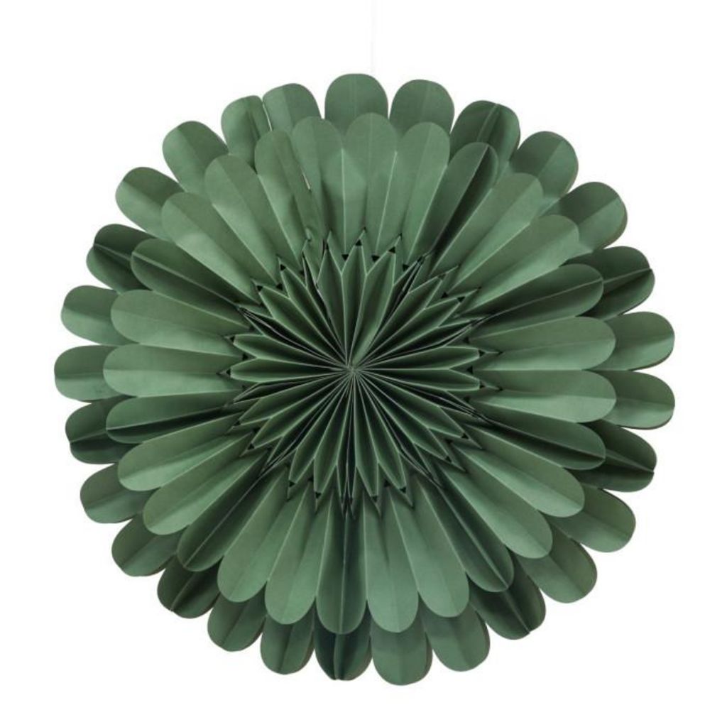 Informations Techniques : Dimensions : D. 60 cm Matières : Papier & PVC Spécificités : Pratique & Tendance Lampe suspension déco Design fleur Forme ronde Douille : E14 (Ampoule non incluses) Poids : 0,8 kg Couleur : Vert