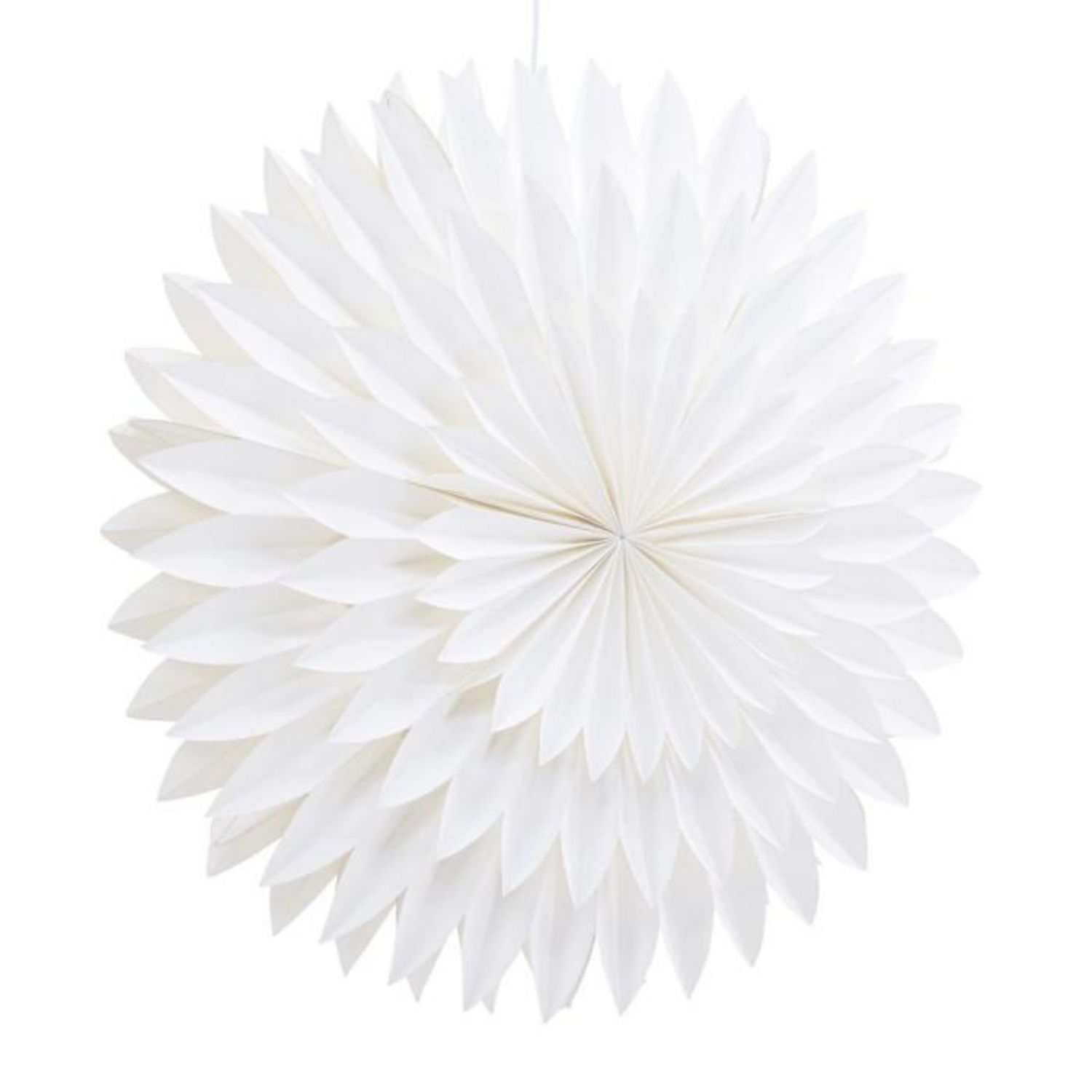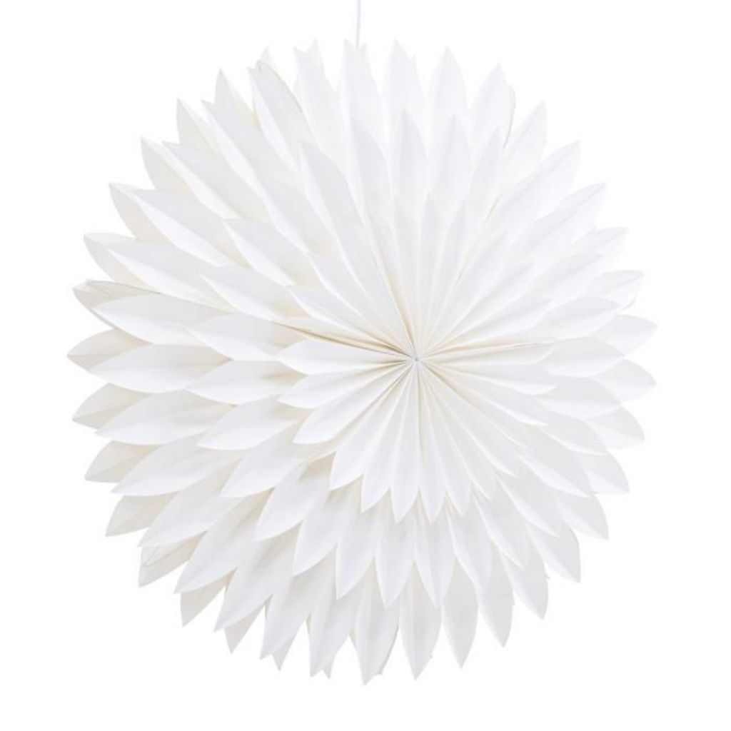 Informations Techniques : Dimensions : D. 60 cm Matières : Papier & PVC Spécificités : Pratique & Tendance Lampe suspension déco Design fleur Ampoule non incluse Douille : E14 Poids : 0,7 kg Couleur : Blanc