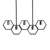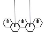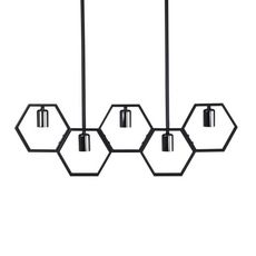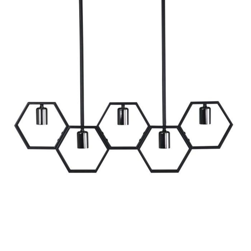 Informations Techniques : Dimensions : L. 80 x l. 4 x H. 26 cm Matières : Acier & PVC Spécificités : Pratique & Déco Suspension design Avec 5 Lampes Ampoules non incluses Douille : E27 Poids : 3,1 kg Couleur : Noir