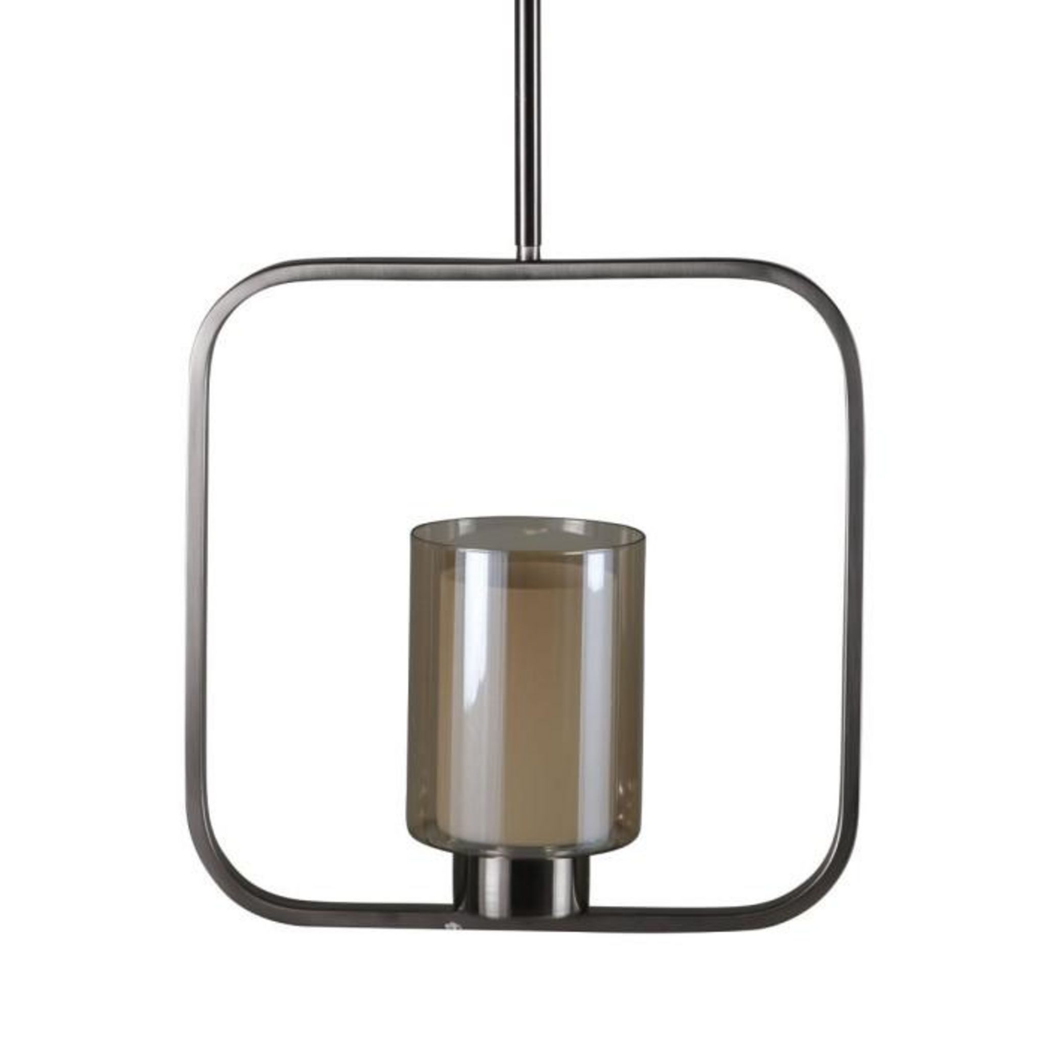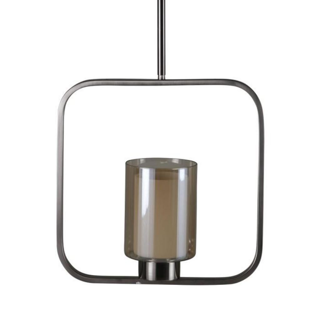 Informations Techniques : Dimensions : L. 34 x l. 12 x H. 34 cm Matières : Acier, Verre & PVC Spécificités : Pratique & Déco Suspension design Ampoule non incluse Douille : E27 Poids : 1,6 kg Couleur : Argent