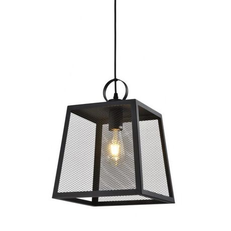 Informations Techniques : Dimensions : L. 28 x l. 28 x H. 37,5 cm Matières : Acier & PVC Spécificités : Pratique & Déco Suspension design Motif en maille sur 2 côtés Forme rectangulaire évasée vers le bas Ampoule non incluse Douille : E27 Poids : 1,33 kg Couleur : Noir