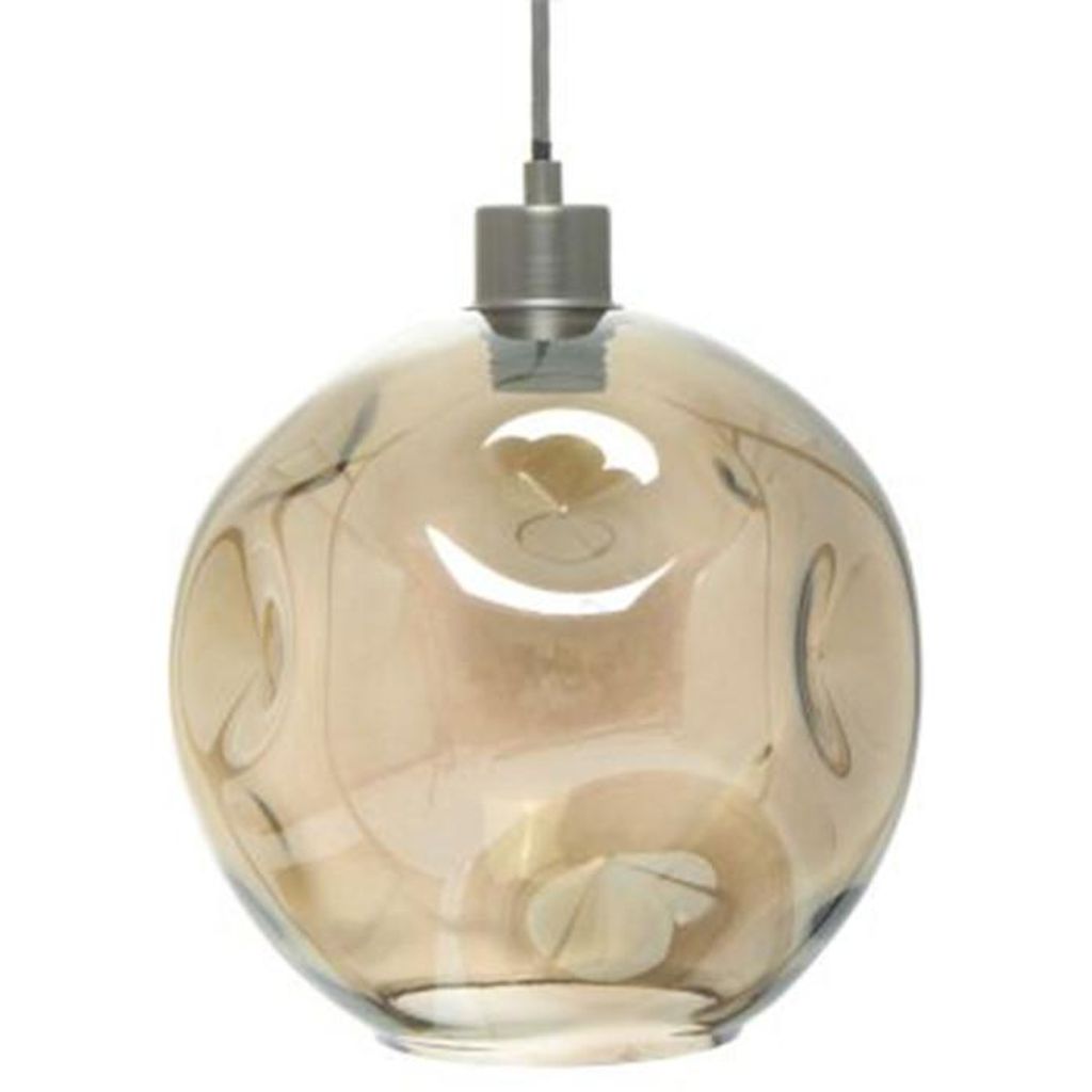 Informations Techniques : Dimensions : D. 26 x H. 32 cm Longueur du câble : 100 cm (environ) Matière : Verre Spécificités : Résistant & Robuste Lampe Suspension design Forme Ronde Type de Douille : E27 Puissance max : 40W Ampoule non incluse Fabrication & Montage : Fait Main Norme CE Classe de prote