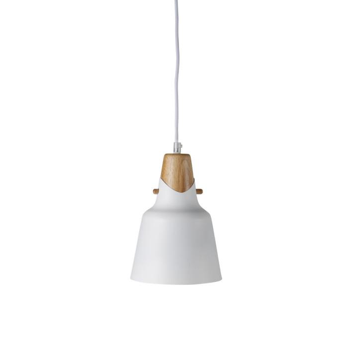Informations Techniques : Dimensions : D. 16 x H. 22 cm Matières : Aluminium Spécificités : Pratique & Tendance Suspension design Plateau couleur noyer Ampoule non incluse Douille : E27 Puissance : 60W Poids : 0,9 kg Couleur : Blanc