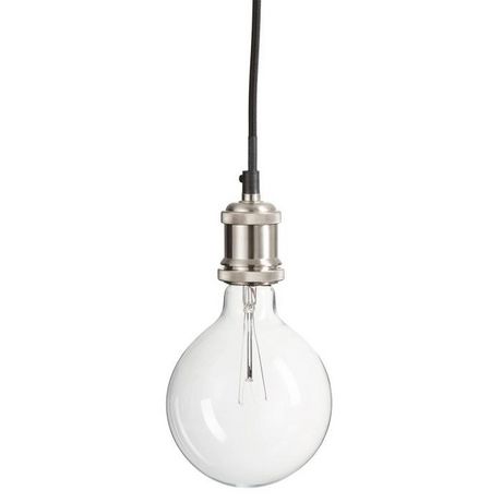 Informations Techniques : Dimensions : L. 10 x l. 10 x H. 195 cm Matières : Métal & Verre Spécificités : Tendance & Original Lampe Suspension design Forme Ronde Poids : 0,32 kg Couleur : Nickel & Transparent