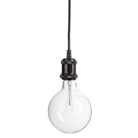 Informations Techniques : Dimensions : L. 10 x l. 10 x H. 195 cm Matières : Métal & Verre Spécificités : Tendance & Original Lampe Suspension design Forme Ronde Poids : 0,32 kg Couleur : Noir & Transparent
