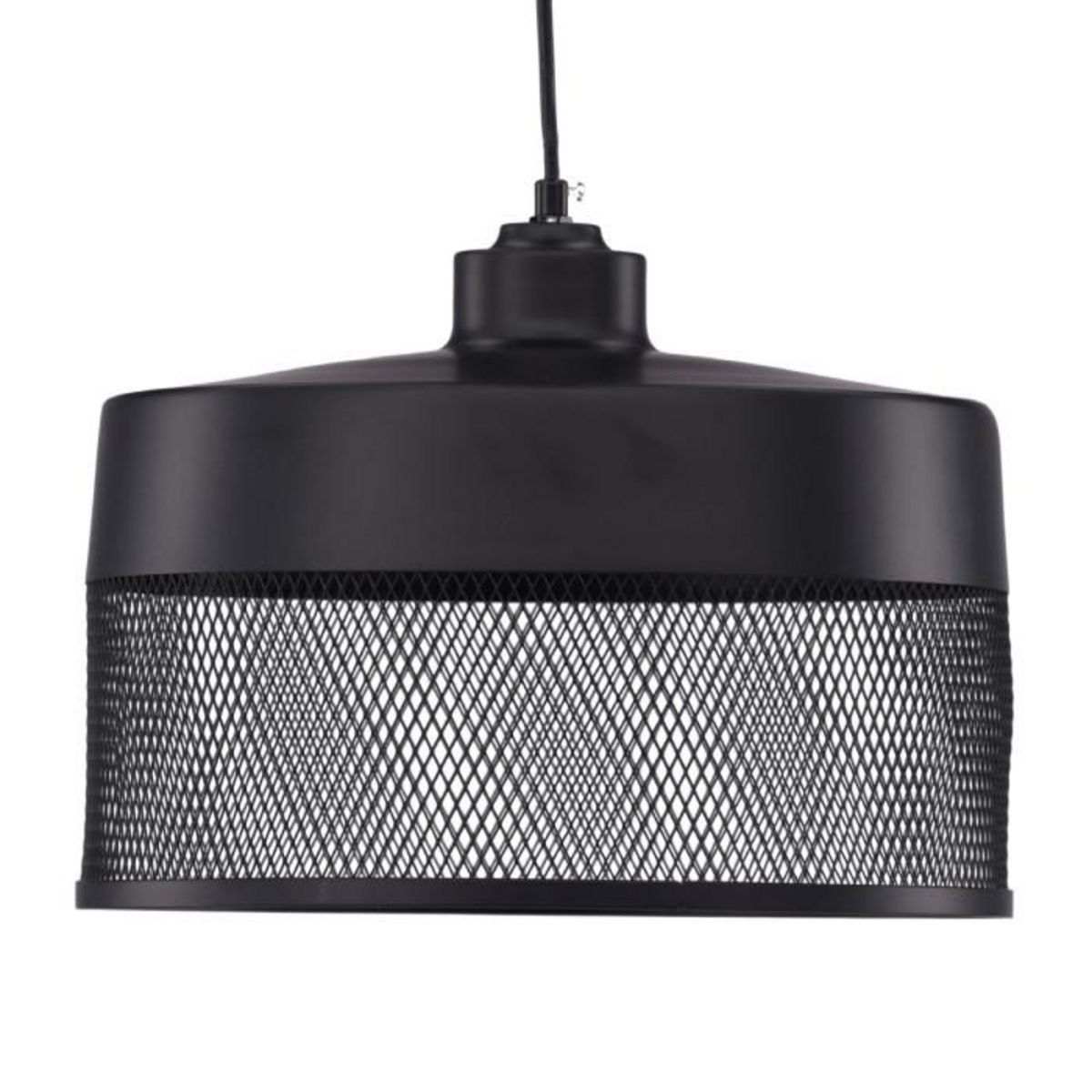 Informations Techniques : Dimensions : D. 33 x H. 24 cm Matières : Métal & PVC Spécificités : Pratique & Tendance Suspension déco Design ajouré Motif en maille Forme ronde Ampoule non incluse Douille : E27 Puissance : 25W Poids : 1,4 kg Couleur : Noir