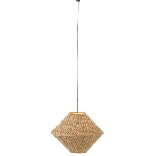 Informations Techniques : Dimensions : L. 35 x l. 35 x H. 27 cm Câble : L. 200 cm Matière : 100% Jonc de Mer Spécificités : Naturelle & Utile Lampe suspension déco Design soucoupe Ampoule non incluse Vendue à l'unité Puissance : 240W Poids : 1,7 kg Couleur : Naturel