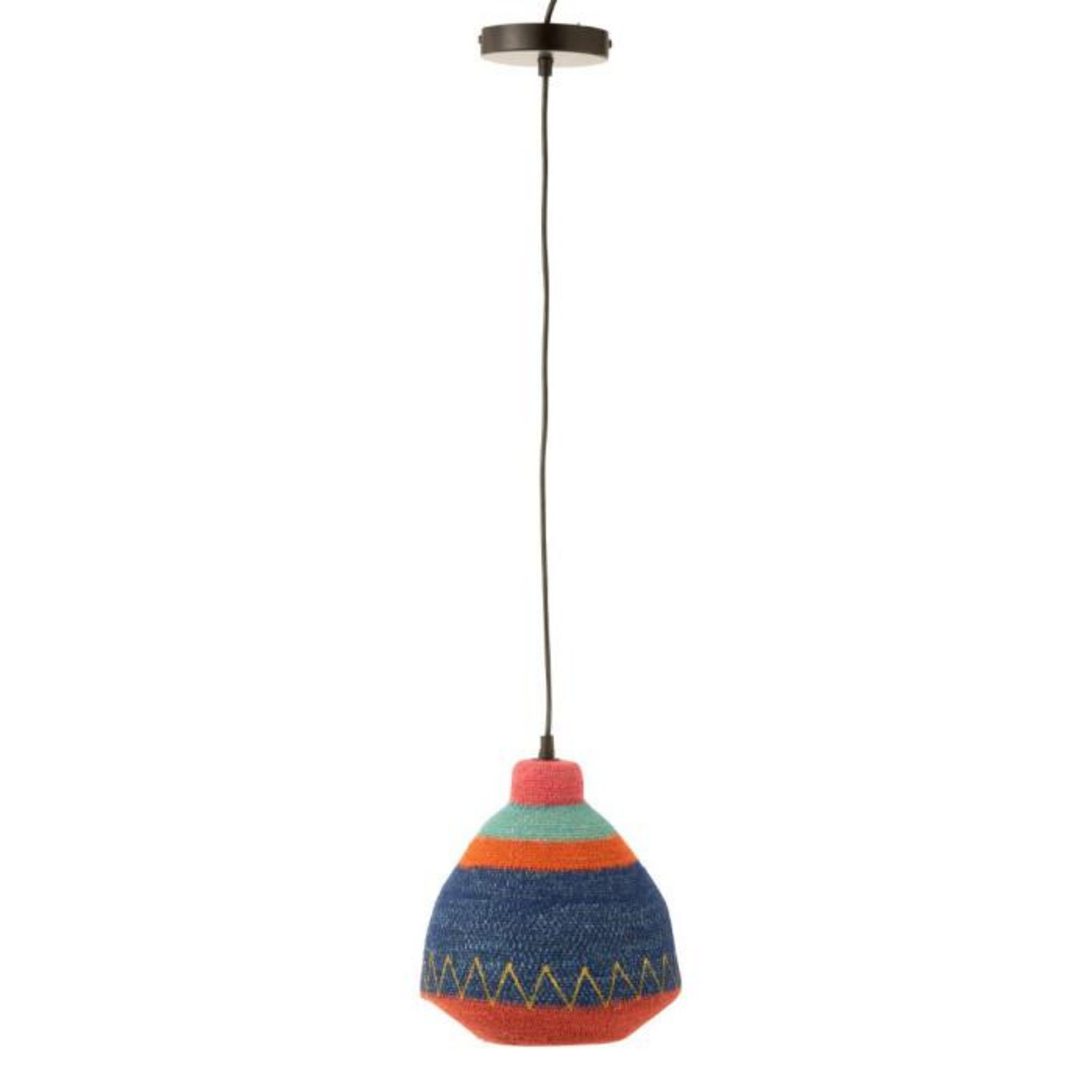 Informations Techniques : Dimensions : D. 25 x H. 27 cm Câble : L. 150 cm Matière : Jonc de Mer Spécificités : Colorée & Utile Design lignes et zigzag bas Ampoule non incluse Douille : E27 Puissance : 25W Poids : 0,32 kg Couleur : Multicolore